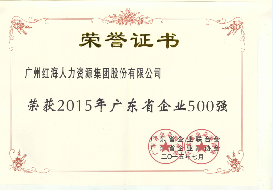 廣州金年会資源集團股份有限公司榜上有名,被列入廣東省500強企業中排行242位,在服務業100強中排名49位。從2015年廣東企業500強的情況可以看到,在新常态經濟形勢下,雖然面臨經濟下行的壓力,但我省産業轉型升級取得了明顯效果,廣東大型骨幹企業在省委、省政府的政策扶持下,大力實施創新驅動發展戰略,相互促進,實現了快速發展,發展質量和效益都有了較大提高,對廣東經濟起到了良好的帶動和幅射作用。廣東大型骨幹企業的快速發展,為廣東省連續26年位居全國經濟第一大省起到了重要作用。而集團再次榜上有名,再一次證明了紅海的實力和紅海服務的宗旨:創造客戶,全心全意為客戶服務,紅海服務做得比您要求的更好。
